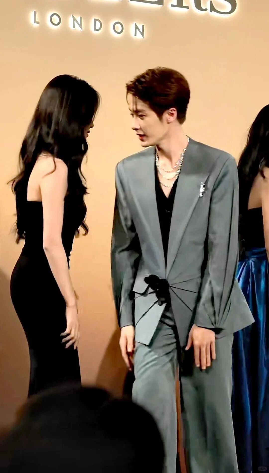 白鹿选择了一条黑色亮片裹胸裙,把长发侧披在肩上,整个人显得温婉大方。这条裙子很衬她的身材,亮片在灯光下闪闪发光,特别好看。看得出来两个人的关系挺不错的,活动现场他们一直在聊天,有说有笑的。接受记者采访的时候,也一直保持着笑容,看起来心情很好。他们站在一起时的身高差挺可爱的,一个优雅绅士,一个温婉可人,确实很像小说里走出来的兄妹。这样的画面不仅好看,还让人觉得很温馨。